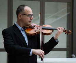 He has given recitals and chamber music concerts in Greece, England, Germany, Switzerland. He has collaborated as a soloist with various orchestras, including Athens State Orchestra, Thessaloniki State Orchestra, London Royal Academy of Music Symphony Orchestra, Stuttgart Academy Symphony Orchestra, Nafplion Festival Orchestra, York University Orchestra, Corfu Symphony Orchestra, Patmos Festival Orchestra, Orchestra of Corfu Philharmonic Society, Athens Municipal Symphony Orchestra, Orchestra of Music Teachers’ Association of East Macedonia-Thraki and others. He was awarded the third prize at the Bubenreuth string quartet International Competition (Germany, 1993) and the first prize at the HELEXPO chamber music competition (Thessaloniki, 1994). He had been member of the European Union Youth Orchestra and the Saint Gallen Symphony Orchestra. He received a viola diploma with “Excellent” and a first prize in 2007 at Phaethon Conservatory in Alexandroupoli. He has recorded music for the Third Programme of the Greek Radio. He is member of the piano-trio Diapason and of the string quintet Quintarco. Since 2003, he is first Principal and Associate Concertmaster in Athens State Orchestra.